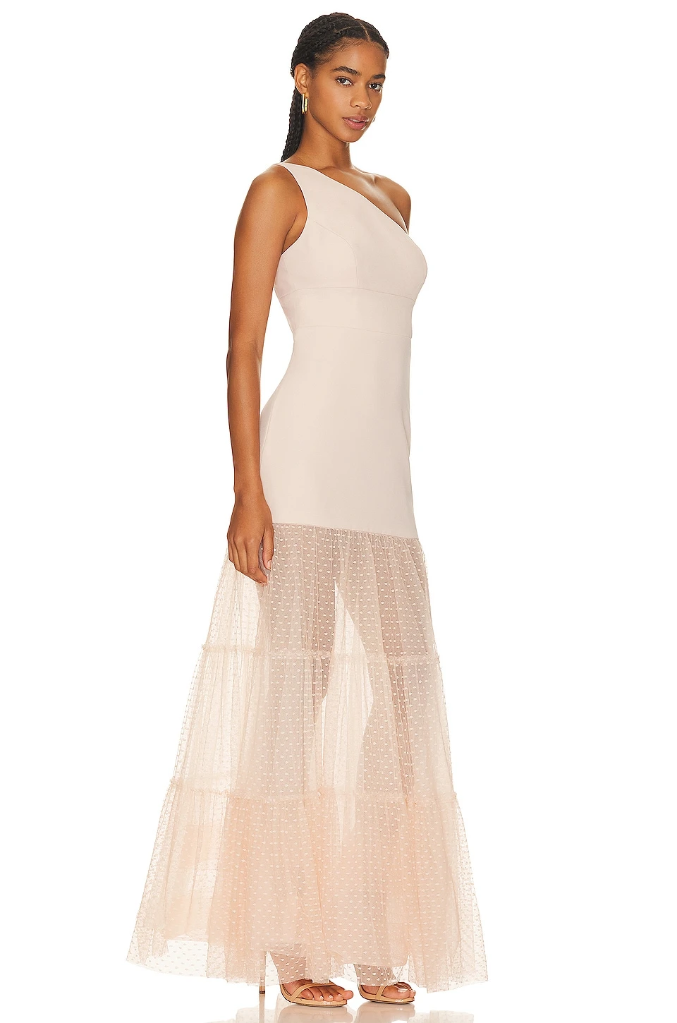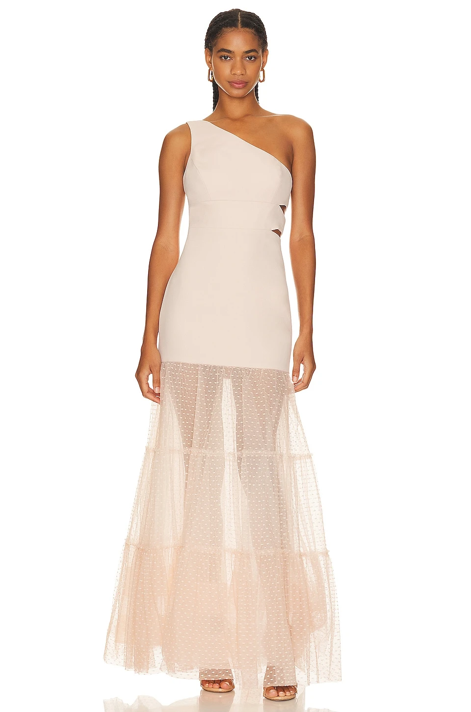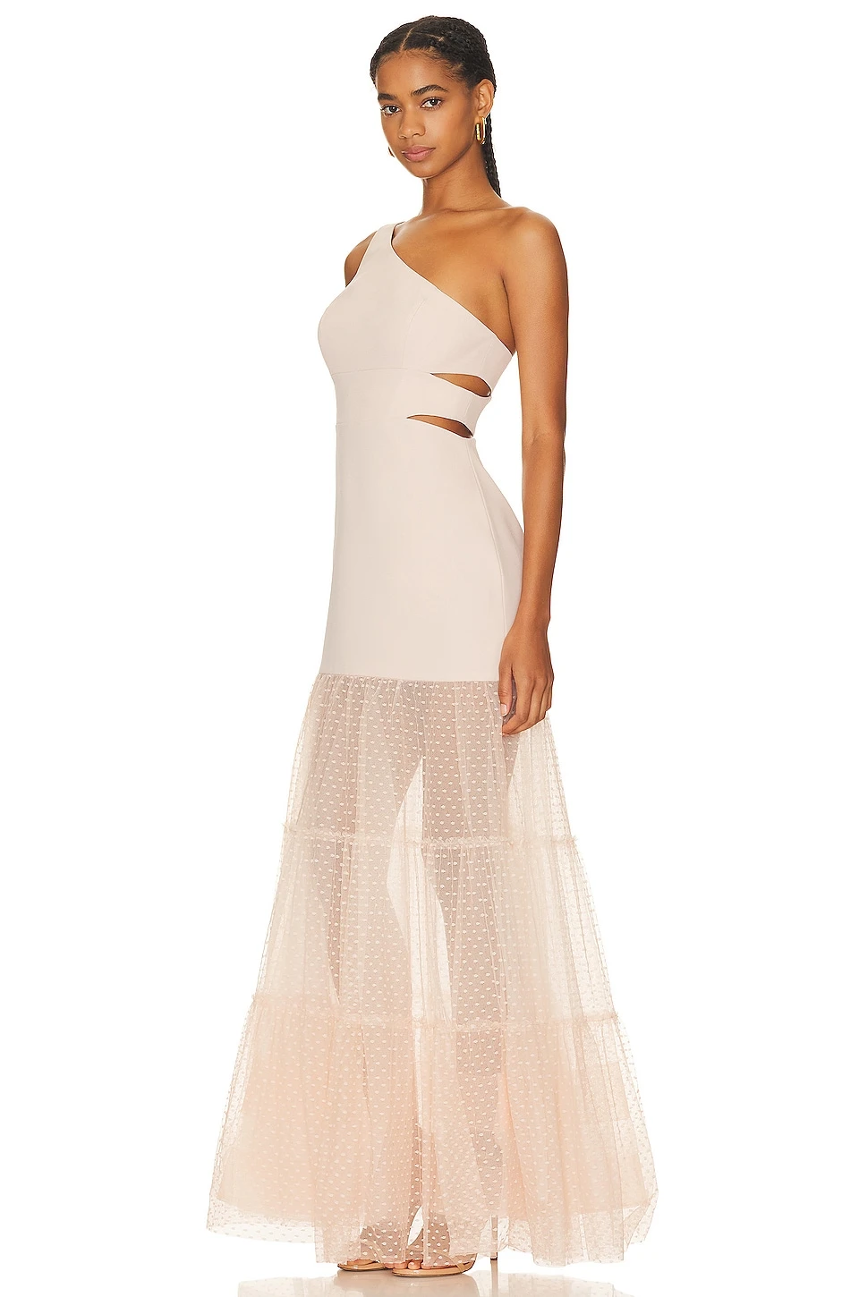 Découpe sur le bustier - Tissu crêpe de jersey et détail en tulle sur la jupe