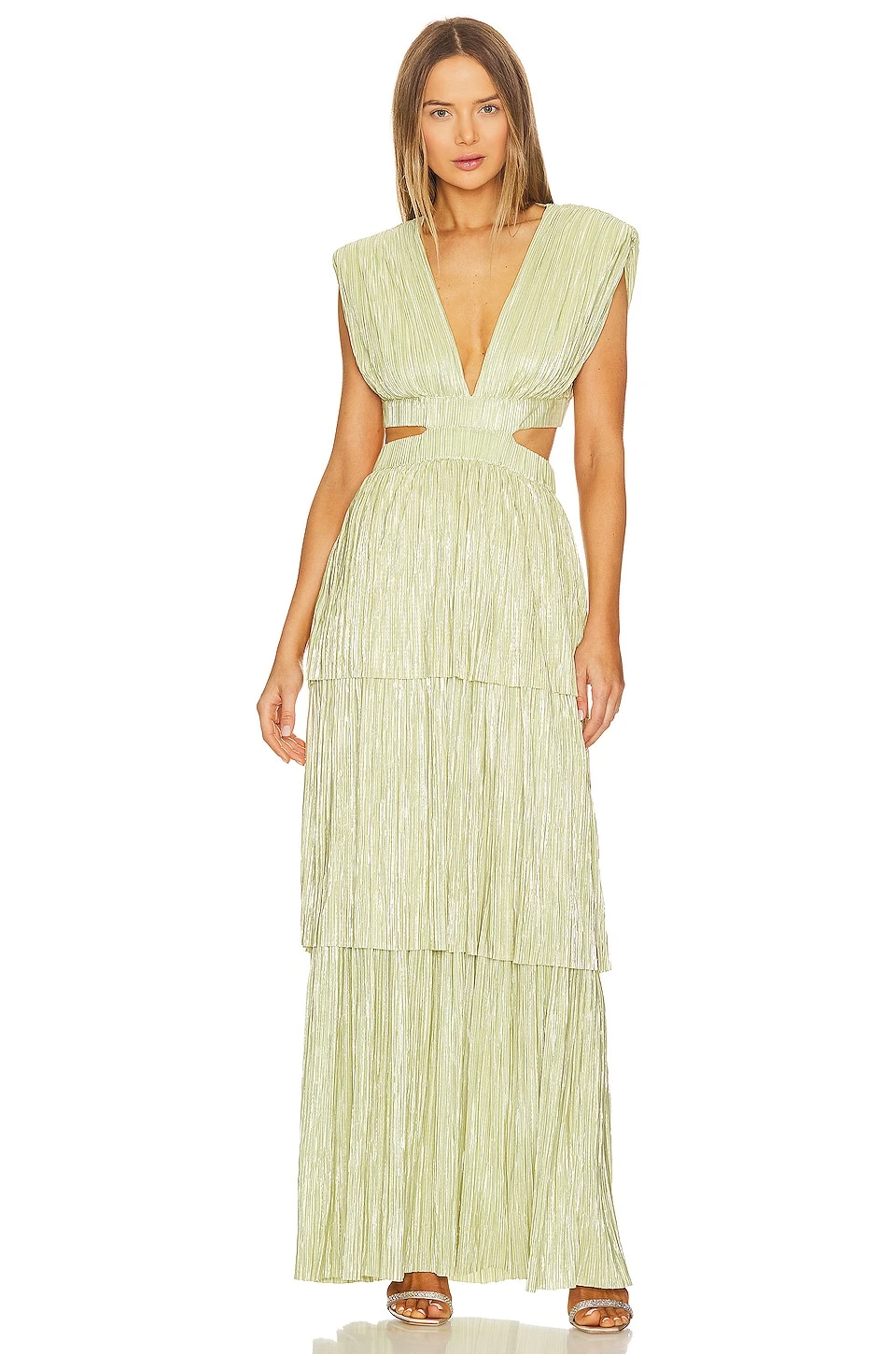 Midweight plisse fabric with metallic threading throughout and tiered skirt - Revolve Style N° SBNA-WD195