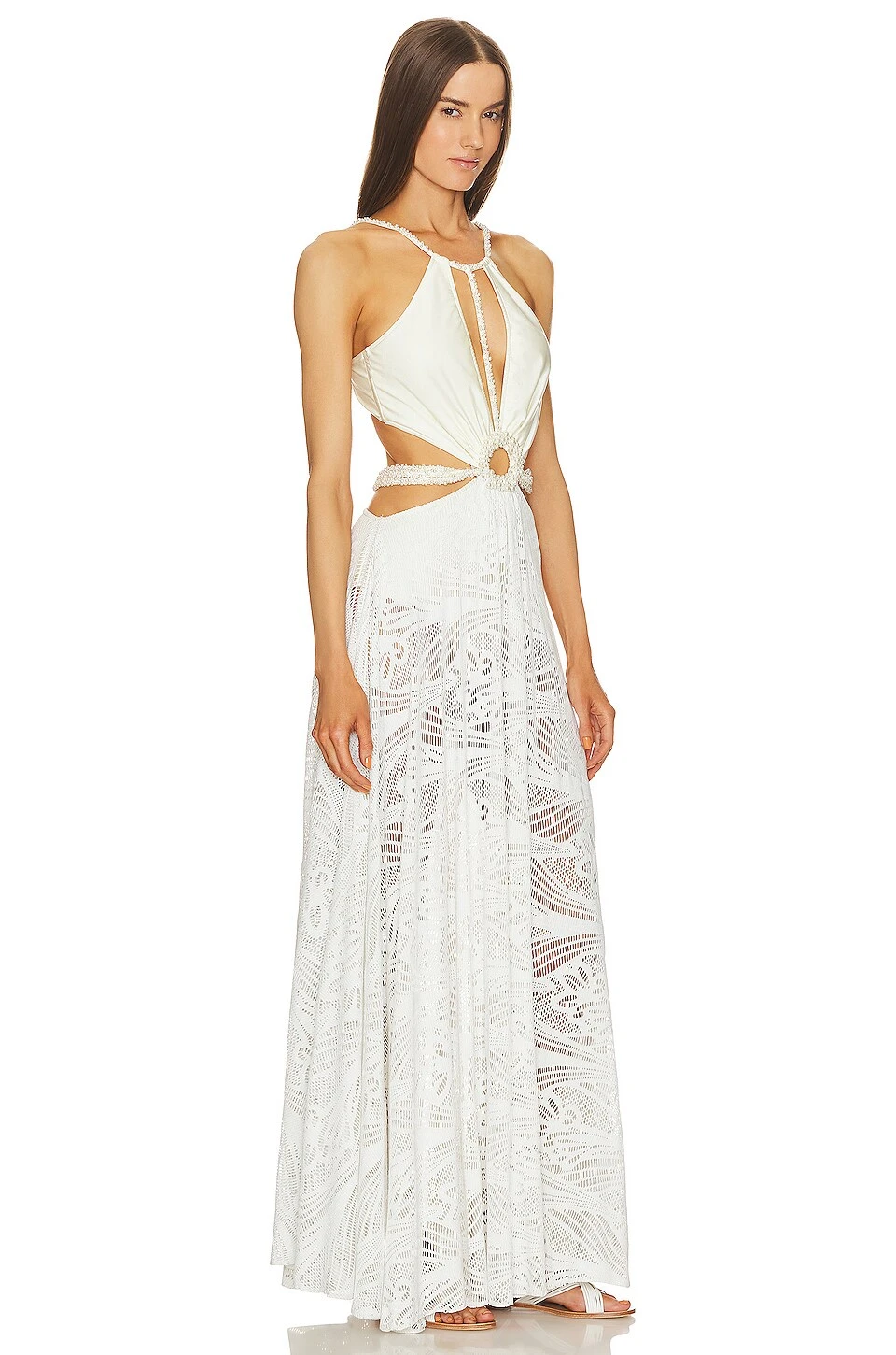 ROBE DE PLAGE AVEC PERLES White