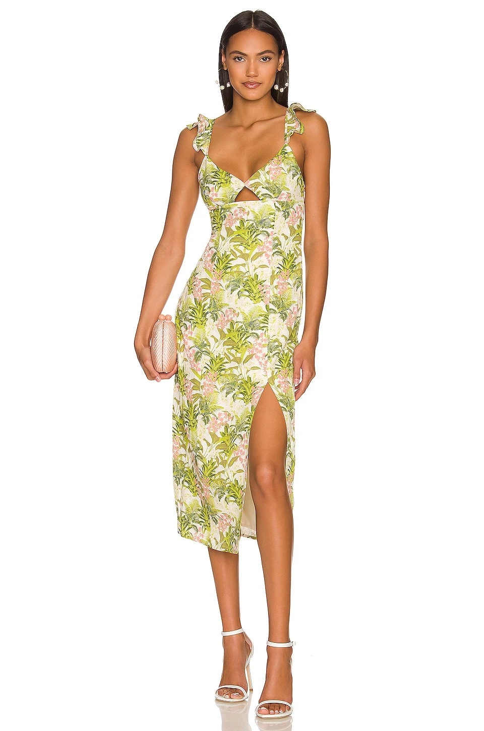 - Adjustable shoulder straps with flutter sleeve detail