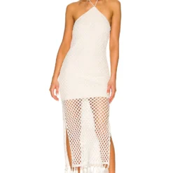 - Tissu maille crochet avec frange et pampille à la base