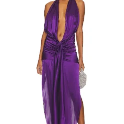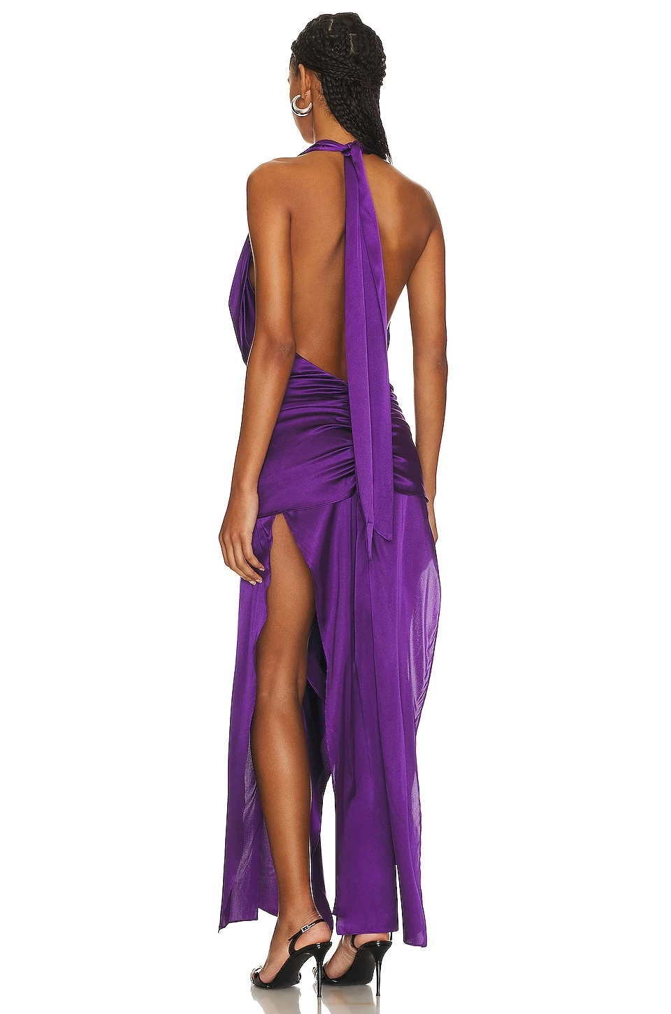 - Ruched satin fabric with side seam slit
